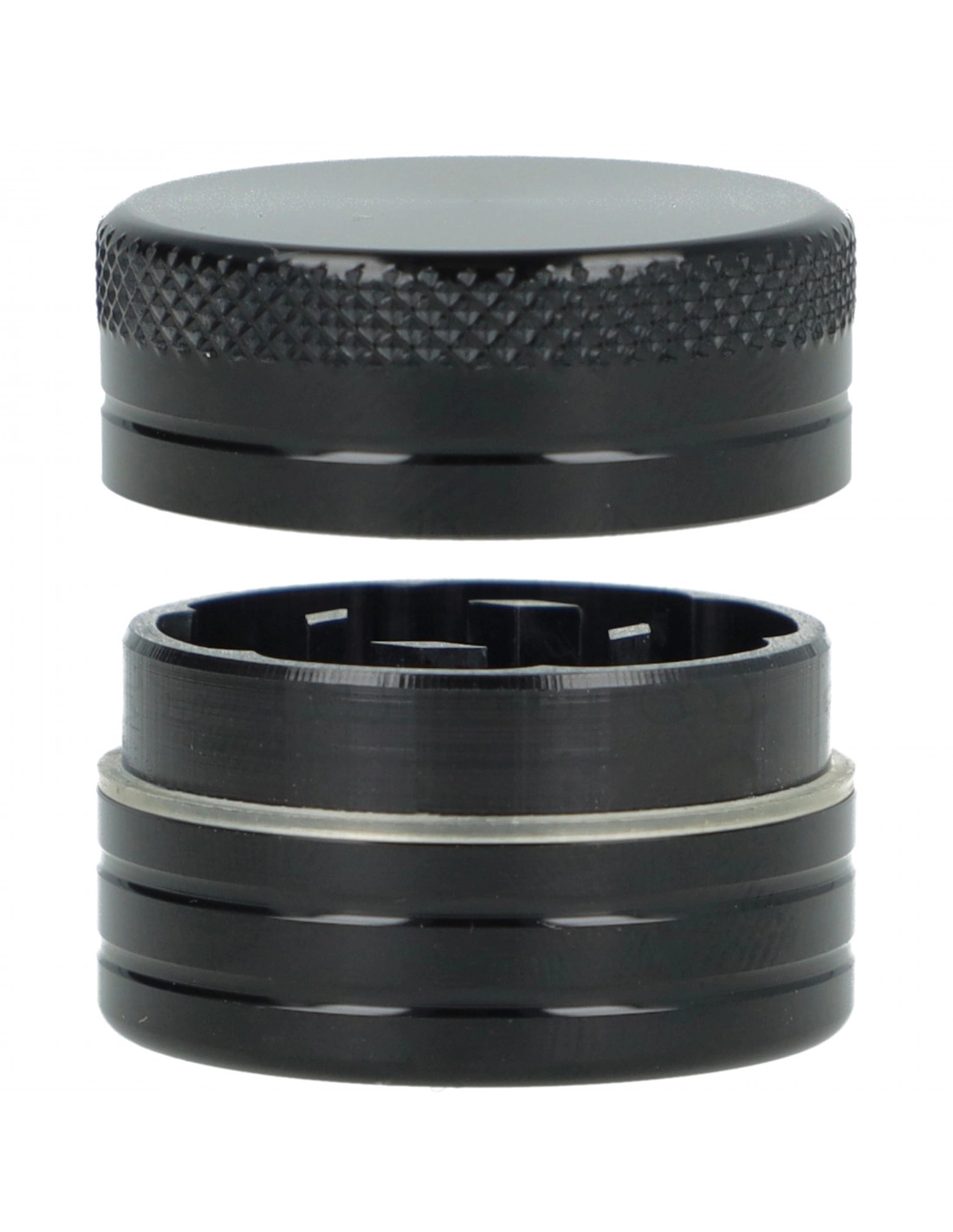 Kompaktowy czarny młynek MIKRO BLACK – aluminiowy grinder 30 mm, 2 części